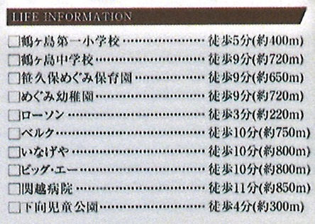 | 学区 | 小学校区:鶴ヶ島市立鶴ヶ島第一小学校 400m 中学校区:鶴ヶ島市立鶴ヶ島中学校 720m |