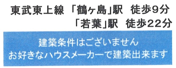 | 交通 | 東武東上線 鶴ヶ島駅まで 徒歩9分 東武東上線 若葉駅まで 徒歩22分 |