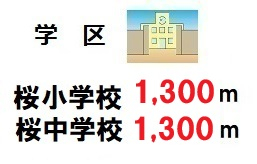 | 学区 | 小学校区:坂戸市立桜小学校 1,300m 中学校区:坂戸市立桜中学校 1,300m |