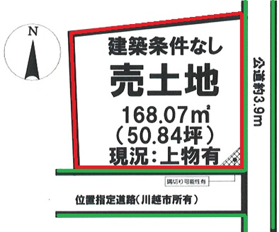 建築条件なし、角地、南道路、公営水道、公共本下水、プロパンガス、上物有、確定測量(売主負担)、更地渡し