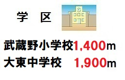 | 学区 | 小学校区:川越市立武蔵野小学校 1,400m 中学校区:川越市立大東中学校 1,900m |