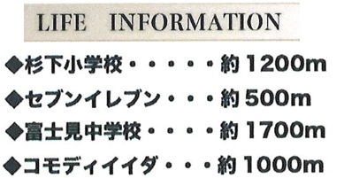 | 学区 | 小学校区:鶴ヶ島市立杉下小学校 1,200m 中学校区:鶴ヶ島市立富士見中学校 1,700m |