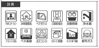 駐車場、公営水道、公共本下水、都市ガス