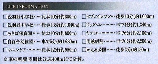 | 学区 | 小学校区:坂戸市立浅羽野小学校 800m 中学校区:坂戸市立浅羽野中学校 1,040m |