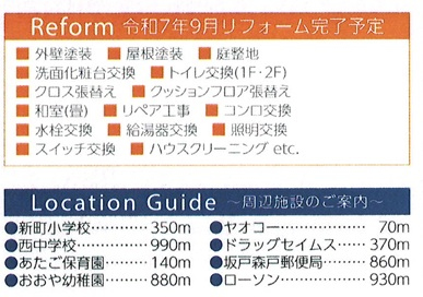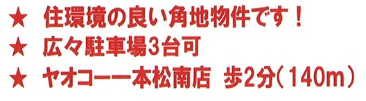 駐車場、角地、公営水道、公共本下水、都市ガス、リフォーム(予定)