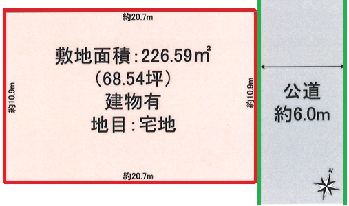 | 接道 | 北東 6m(幅員) 公道 10.9m(接面) |