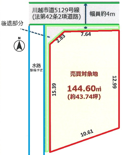 | 接道 | 北 4m(幅員) 42条2項道路 7.6m(接面) |