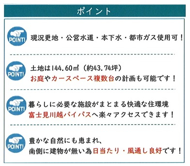 建築条件なし、公営水道、公共本下水、都市ガス、農地法5条の届出要、現況渡し