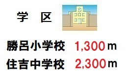 | 学区 | 小学校区:坂戸市立勝呂小学校 1,300m 中学校区:坂戸市立住吉中学校 2,300m |