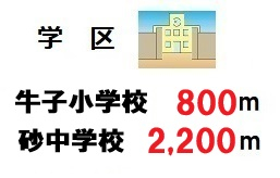 | 学区 | 小学校区:川越市立牛子小学校 800m 中学校区:川越市立砂中学校 2,200m |