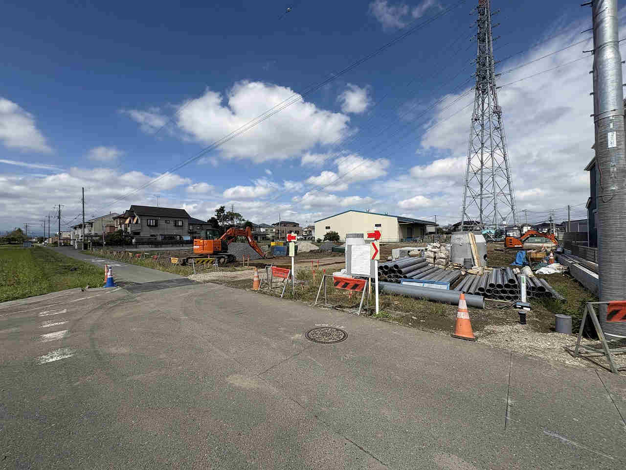 建築条件なし、南道路、公営水道、公共本下水、都市ガス、造成工事後引渡し、地目変更登記後引渡し