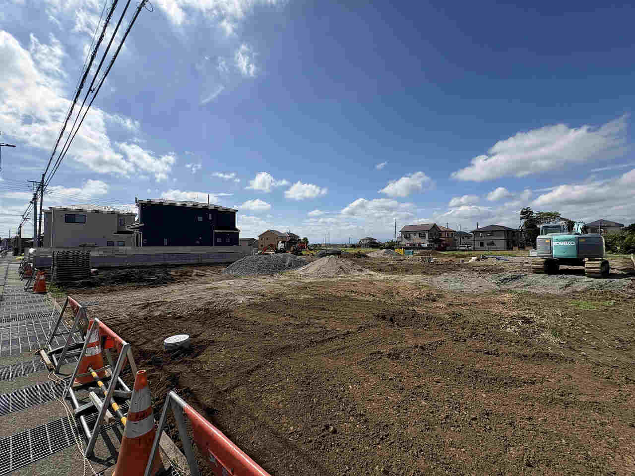 建築条件なし、南道路、公営水道、公共本下水、都市ガス、造成工事後引渡し、地目変更登記後引渡し