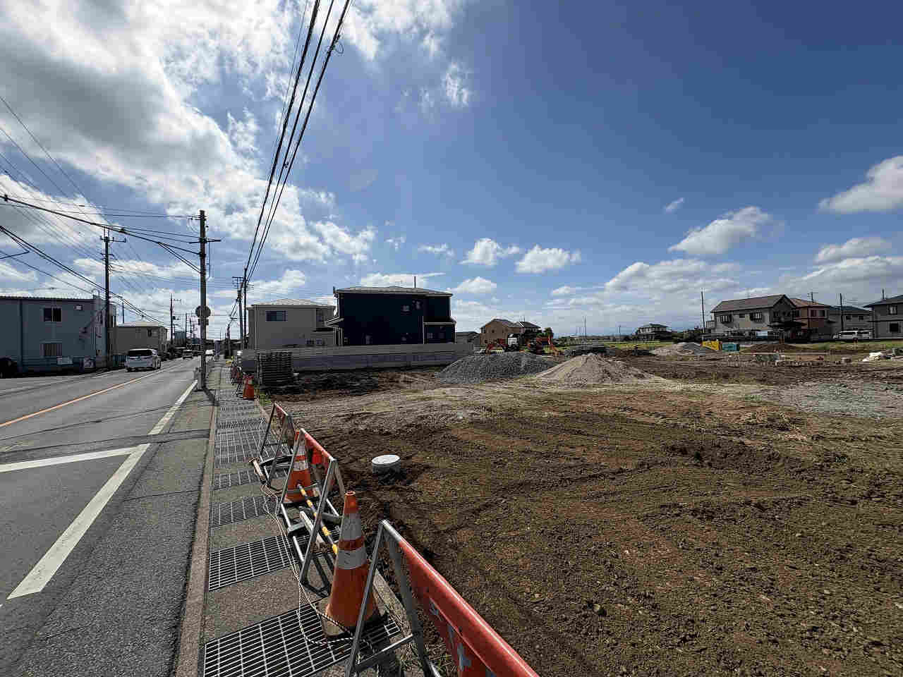建築条件なし、南道路、公営水道、公共本下水、都市ガス、造成工事後引渡し、地目変更登記後引渡し