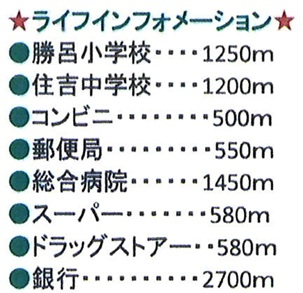 | 学区 | 小学校区:坂戸市立勝呂小学校 1,250m 中学校区:坂戸市立住吉中学校 1,200m |