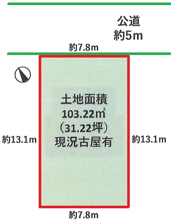 | 接道 | 北東 5m(幅員) 公道 7.8m(接面) |