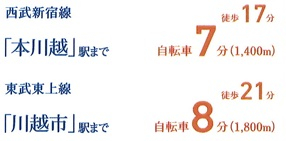 | 交通 | 西武新宿線 本川越まで 徒歩17分 東武東上線 川越市駅まで 徒歩21分 |