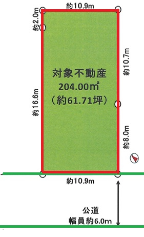 | 接道 | 南東 6m(幅員) 公道 10.9m(接面) |