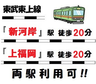 東武東上線『新河岸』駅・『上福岡』駅徒歩20分の両駅利用可能!