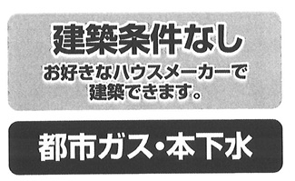 建築条件なし、南道路、公営水道、公共本下水、都市ガス、平屋か2階建てのみ建築可能、更地