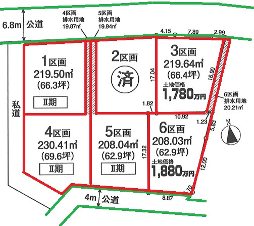 建築条件なし、調整(線引き前宅地)、南道路、公営水道、個別浄化槽、都市ガス、開発許可が必要です(売主負担)、完成宅地での引渡し