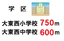 大東西小学校まで約750m、大東西中学校まで約600mの小・中学校に近い物件です!