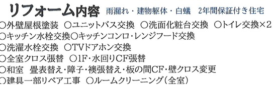 駐車場、駐車スペース3台以上、南道路、公営水道、浄化槽、プロパンガス(ガス会社による貸与契約有)、現況渡し、空家、リフォーム済