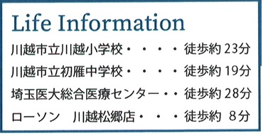| 学区 | 小学校区:川越市立川越小学校 1,700m 中学校区:川越市立初雁中学校 1,300m |