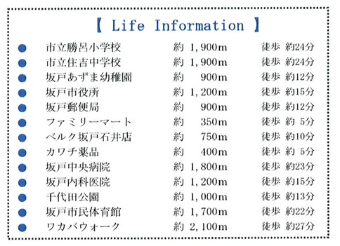 | 学区 | 小学校区:坂戸市立千代田小学校 550m 中学校区:坂戸市立千代田中学校 900m |