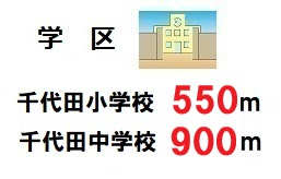千代田小学校まで約550m、千代田中学校まで約900mの小・中学校に近い物件です!