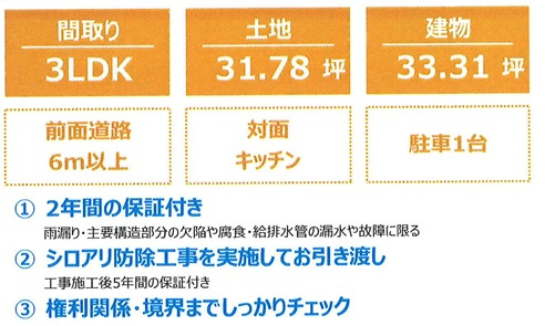 駐車場、南道路、公営水道、公共本下水、都市ガス、空家、司法書士(売主指定)、火災保険(売主指定)