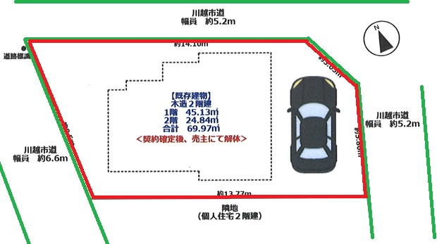 | 接道 | 北 5.2m(幅員) 公道 14.1m(接面) 西 6.6m(幅員) 公道 8.5m(接面) 東 5.2m(幅員) 公道 5.8m(接面) |