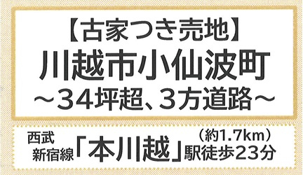 西武新宿線『本川越』駅徒歩23分!