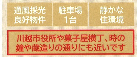 | 交通 | 西武新宿線 本川越まで 徒歩23分 東武東上線 川越市駅まで 徒歩29分 |