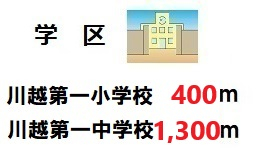 | 学区 | 小学校区:川越市立川越第一小学校 400m 中学校区:川越市立川越第一中学校 1,300m |