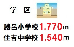 | 学区 | 小学校区:坂戸市立勝呂小学校 1,770m 中学校区:坂戸市立住吉中学校 1,540m |