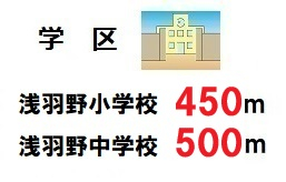浅羽野小学校まで約450m、浅羽野中学校まで約500mの小・中学校に近い物件です!