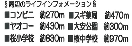 | 学区 | 小学校区:坂戸市立桜小学校 830m 中学校区:坂戸市立桜中学校 970m |