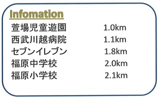 | 学区 | 小学校区:川越市立福原小学校 2,000m 中学校区:川越市立福原中学校 2,100m |
