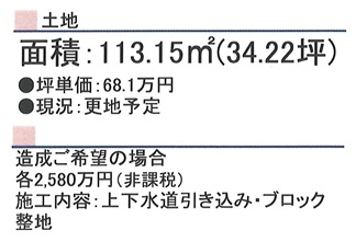 建築条件なし、公営水道、公共本下水、都市ガス、更地渡し、確定測量予定