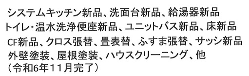 駐車場、駐車スペース3台以上、公営水道、浄化槽、プロパンガス、司法書士(売主指定)、リフォーム予定(令和6年11月完了)