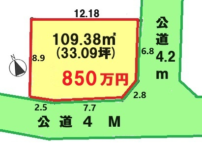 | 接道 | 南 4m(幅員) 公道 7.7m(接面) 東 4.2m(幅員) 公道 6.8m(接面) |